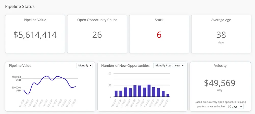 In this post, we’ll focus on the Pipeline Status section and explore what each widget reveals about your sales process—and how to act on that insight.