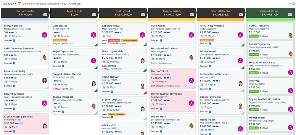 Sürecin her aşaması, bir fırsatın ilk temastan satış kapanışına kadar geçtiği önemli bir adımı temsil eder.